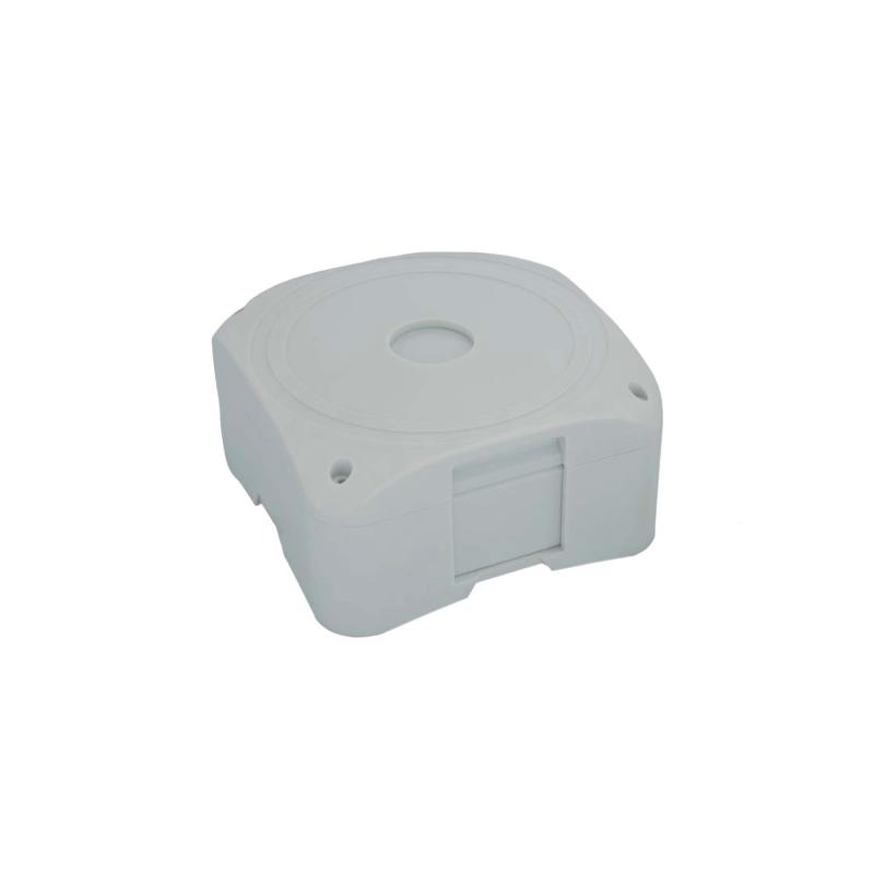 Caixa de Passagem para acomodação de cabos de sistemas de segurança eletrônica, ideal para instalação de câmera de CFTV. O produto possui uma entrada na tampa, permitindo a fixação de câmera com uso de parafuso auto atarraxante.