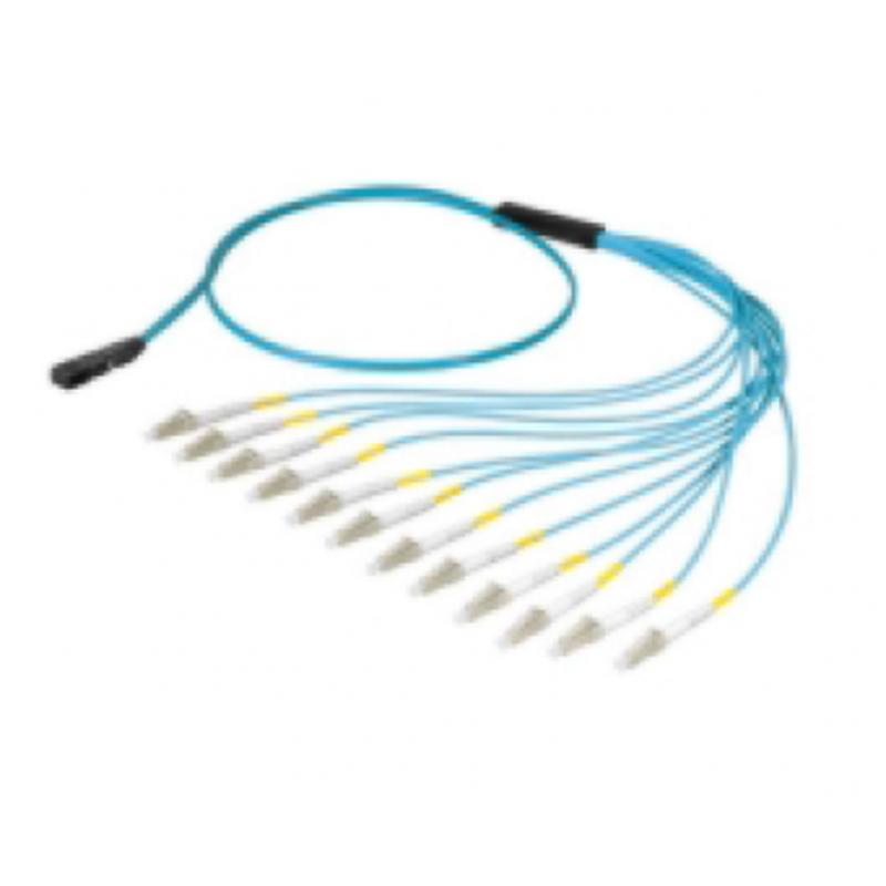 O cordão óptico conectorizado multimodo OM4 LightEra é pré-terminado em fábrica e indicado para interligação entre áreas ZDA e EDA em ambientes de alta densidade de fibras ópticas, como data centers e redes corporativas. Possui 12 fibras, comprimento de 10 metros, construção híbrida com MPO12-UPC (fêmea) em uma extremidade e 12 conectores LC-UPC na outra, padrão Tipo B, com capa LSZH na cor acqua, garantindo segurança, organização e excelente desempenho óptico.