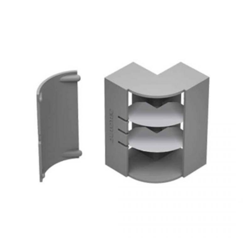 Esse modelo suporta ajustes entre 25 e 45 mm, sendo compatível com canaletas R30, e possui design plano em formato “L” para facilitar a instalação em espaços reduzidos. Além de contribuir para a organização dos cabos, a curva vertical interna assegura proteção contra impactos e facilita a passagem segura dos condutores elétricos, mantendo o sistema alinhado e funcional.
