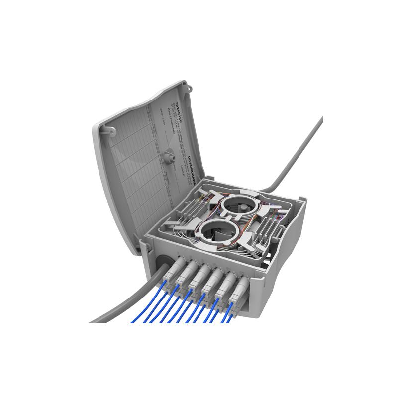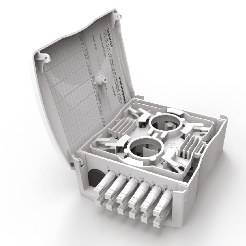 Fabricado em plástico de alta resistência mecânica, o CDOI12 acomoda reservas de fibra no seu interior e suporta protetores de emenda por fusão de 40 mm ou 60 mm, além de emendas mecânicas. Seus “boots” são customizáveis para diferentes tipos de cabos ópticos, como 2 mm, 3 mm, 5,3 mm (dupla capa) ou cabos compactos. A bandeja articulada permite inversão nas fibras, aumentando a flexibilidade, e ainda há possibilidade de instalação de splitters ópticos, tornando o módulo completo para gerenciamento de redes FTTx.