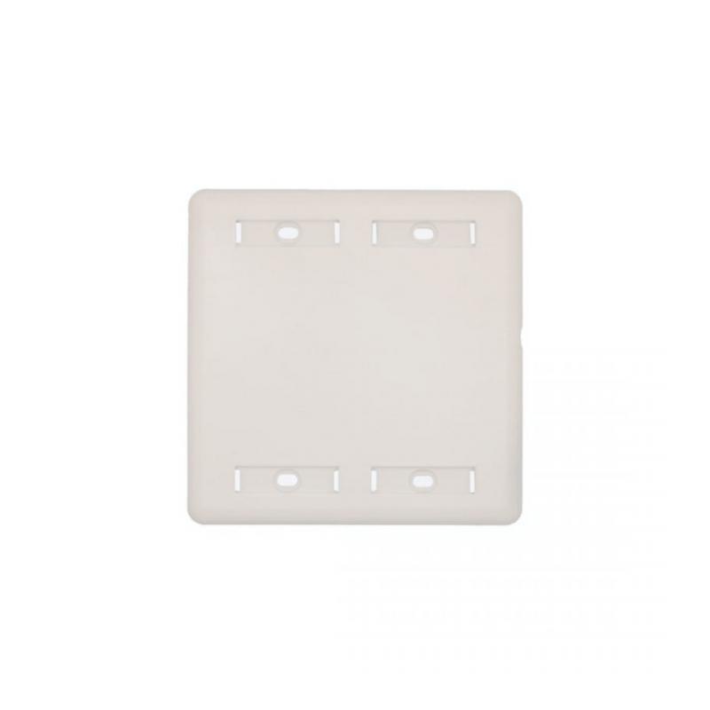 Produto desenvolvido para utilização em conjunto com caixas embutidas em parede, nas dimensões de 4x4", em instalações de infraestrutura de redes de voz, vídeo e dados, compatível com conectores RJ-45 fêmea padrão “keystone”.
