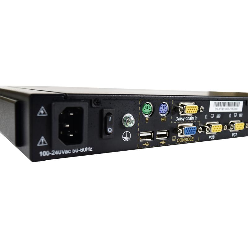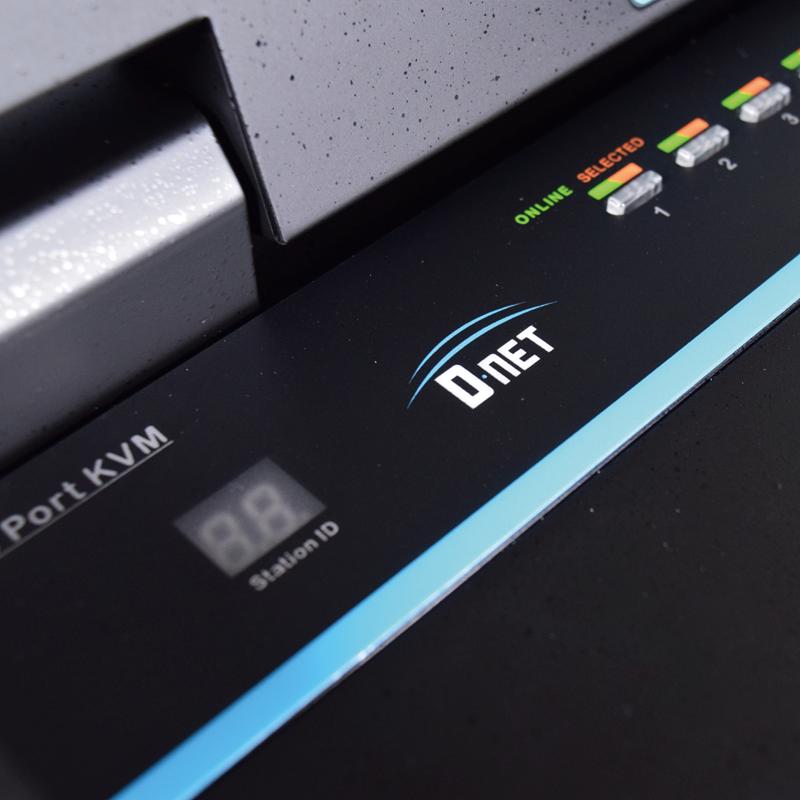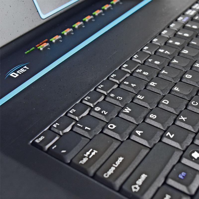 A série de gavetas DN-KVM permite acesso eficiente a múltiplos dispositivos com um único monitor, teclado e touchpad integrado. Com um monitor LCD LED de 17" e ocupando apenas 1U do rack, a linha oferece três modelos com 1, 8 ou 16 portas de conexão direta, podendo ser expandida com switches adicionais.
