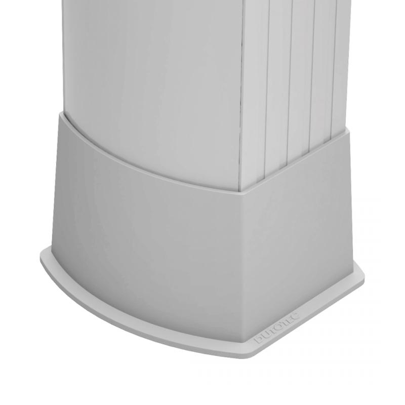 As colunas Plus Light são empregadas para instalações em áreas comerciais (ilhas), industriais e locais com baixos esforços laterais. Elas apresentam uma estrutura tubular de alumínio estruturado com uma seção em cada lado, permitindo a separação de sinais lógicos e de energia. A configuração inclui duas tampas padrão, um parafuso extensor, fixador superior, luva de arremate e base de apoio inferior e superior. A dimensão padrão é um comprimento útil de 3m, podendo ser estendida para até 3,5m com o uso de um extensor. A coluna pode ser reduzida de tamanho se cortada. Sua funcionalidade envolve a fixação entre a laje do forro e do piso por meio de um parafuso regulador, excluindo os suportes para equipamentos.