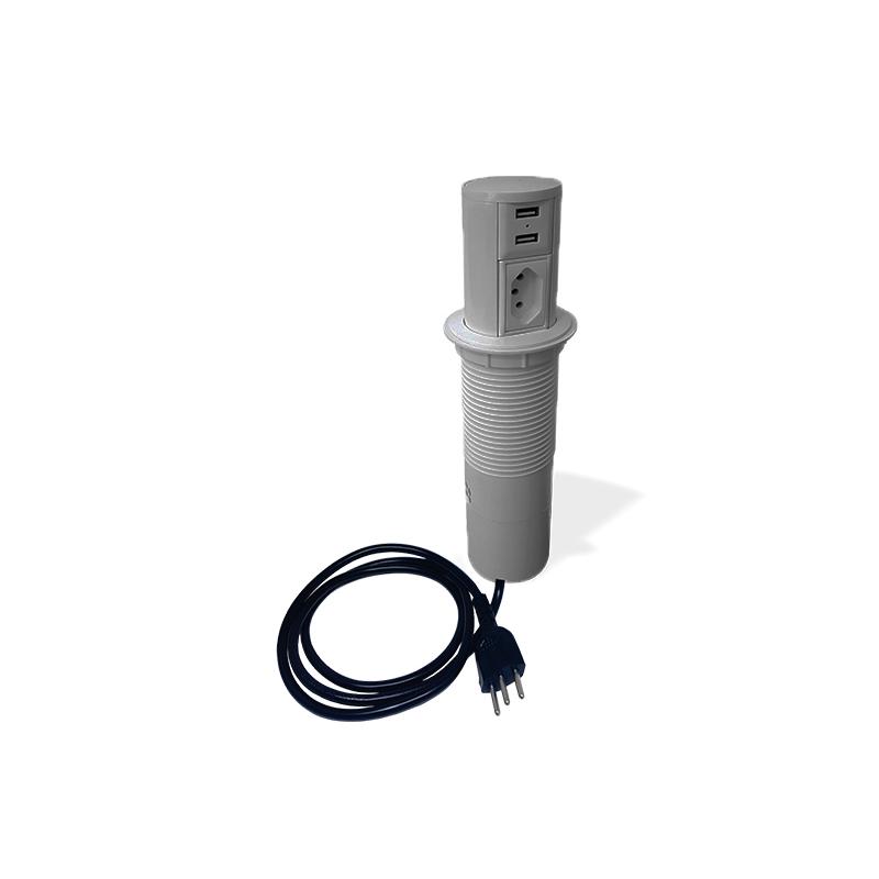 O Mini Totem Automático tem 1 tomada elétrica + 2 USBs em um único produto.