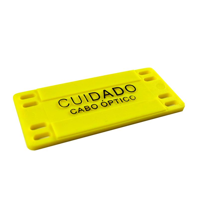 A Placa de Identificação de Cabo Óptico ABNT - N° 2 CCO (com relevo) - Amarelo é uma solução projetada conforme a norma ABNT, com dimensões padronizadas de 90x40x3 mm.