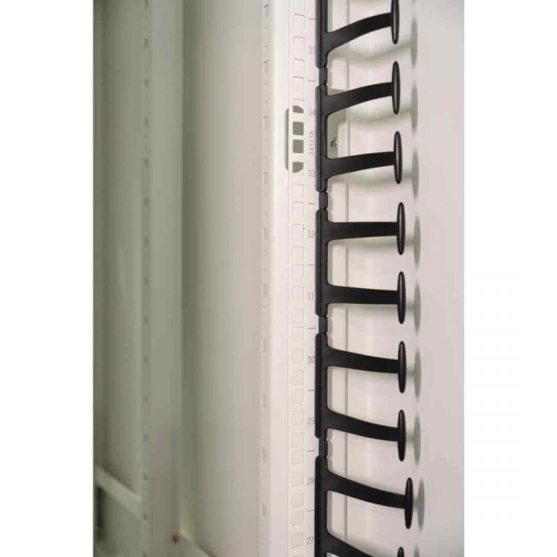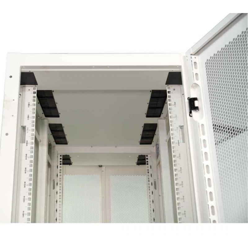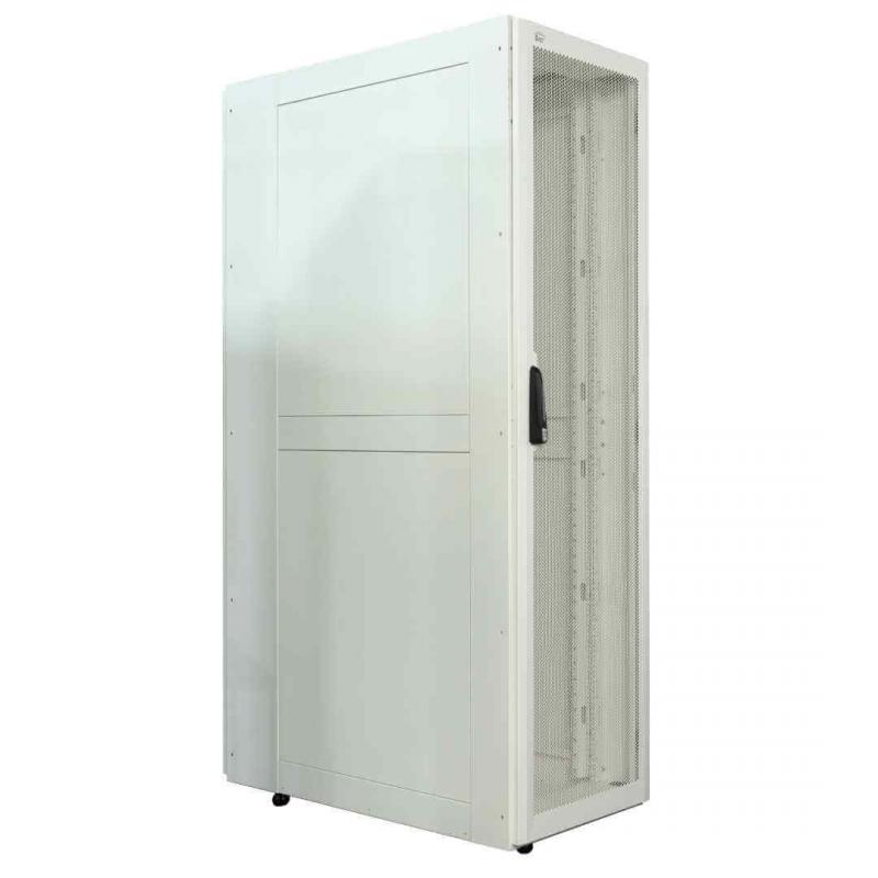 O Rack DataCenter 19" desmontável 45U, com porta frontal perfurada, é ideal para ambientes que exigem alta ventilação e organização de equipamentos. Com estrutura robusta e pintura branca, possui dimensões de 600 x 1100mm, garantindo espaço interno otimizado para servidores e acessórios.