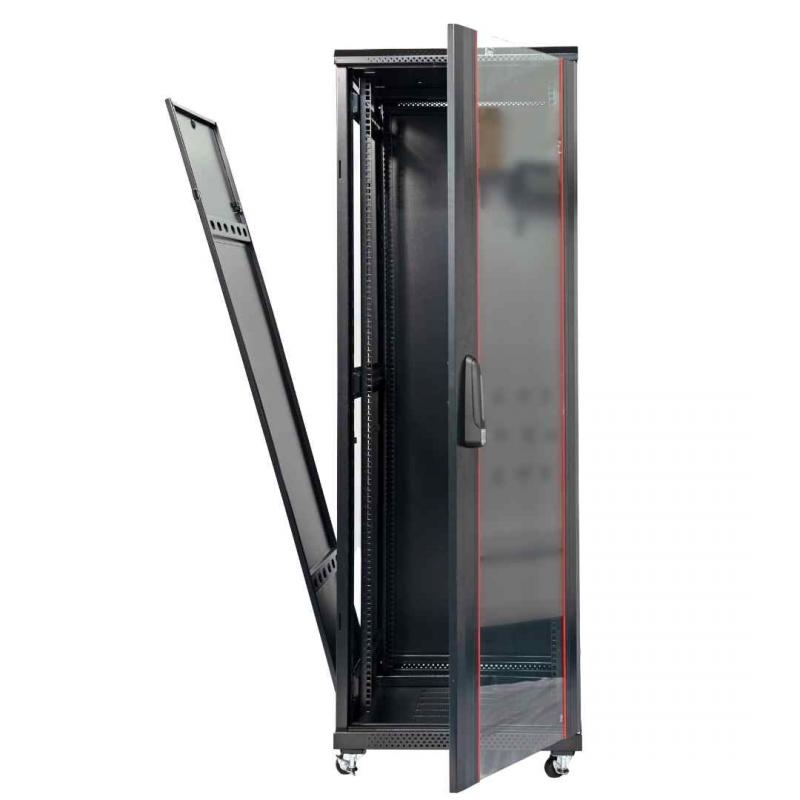 Com estrutura robusta em aço de alta resistência e pintura eletrostática preta, este rack proporciona durabilidade e um visual moderno. A porta frontal em vidro temperado permite a visualização dos equipamentos sem comprometer a segurança, oferecendo um design funcional e elegante.