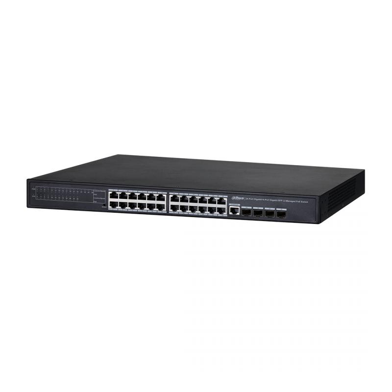 O Switch Dahua DH-PFS4428-24GT-370 é um equipamento gerenciável de camada 2, projetado para redes de alta demanda. Conta com 24 portas Gigabit PoE (IEEE802.3af/at) com potência total de 370W e 4 portas SFP, oferecendo flexibilidade para expansão via fibra óptica. Suporta protocolos de redundância como STP/RSTP/MSTP, além de ser compatível com IPv4/IPv6 e DHCP, garantindo integração confiável em diferentes cenários de rede.