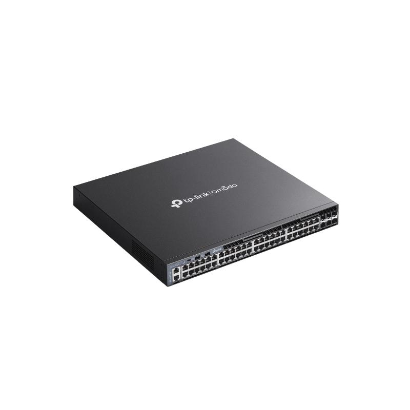 Projetado para alta disponibilidade, conta com fontes redundantes substituíveis em campo, suporte a VRRP e ERPS, e pode ser gerenciado pela nuvem via Omada SDN ou de forma independente (Web, CLI, SNMP e RMON).