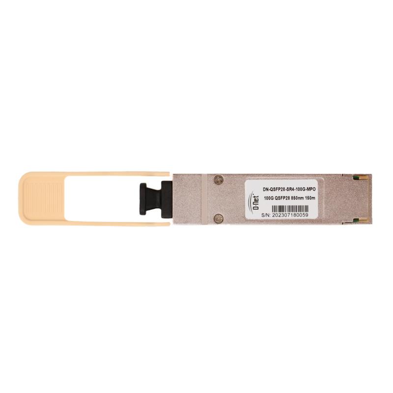 Compatível com o padrão IEEE 802.3ba 100GBASE-SR4, o QSFP28 possui conector MPO, facilitando a conexão em redes ópticas. A instalação é simples, com funcionalidade Plug & Play e recurso Hot Swap, permitindo adições ou remoções sem desligar o equipamento. Ele é compatível com produtos D-Net e outras marcas de switches e conversores com slot QSFP28, garantindo interoperabilidade e eficiência energética em implementações de alta performance.